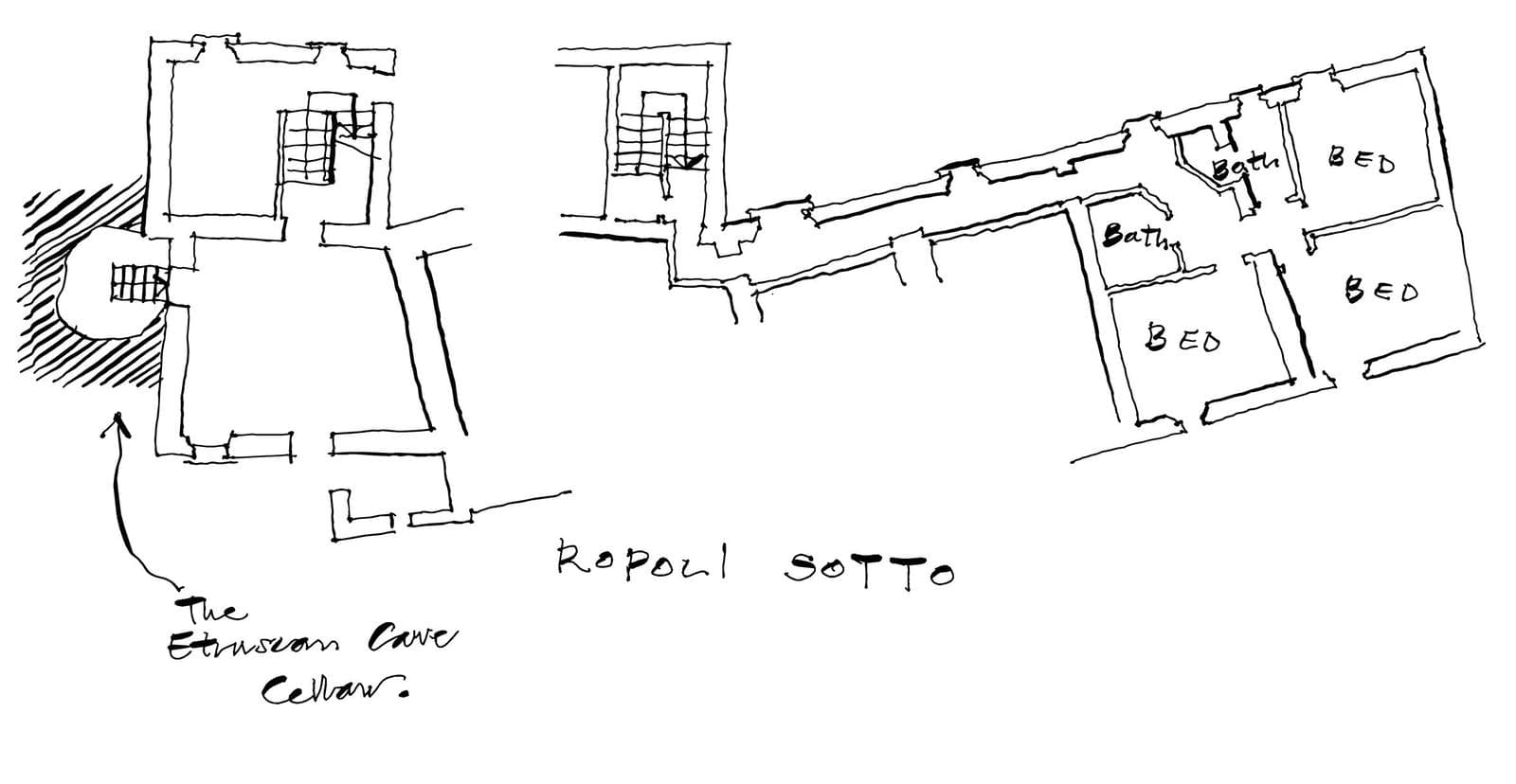 The hamlet is reached by winding up the hill on an ancient "strada bianca", a gravel road. The two Ropoli buildings are halfway up the hill. Stopping midway up the hill has some advantages and Ropoli Sotto enjoys them all.