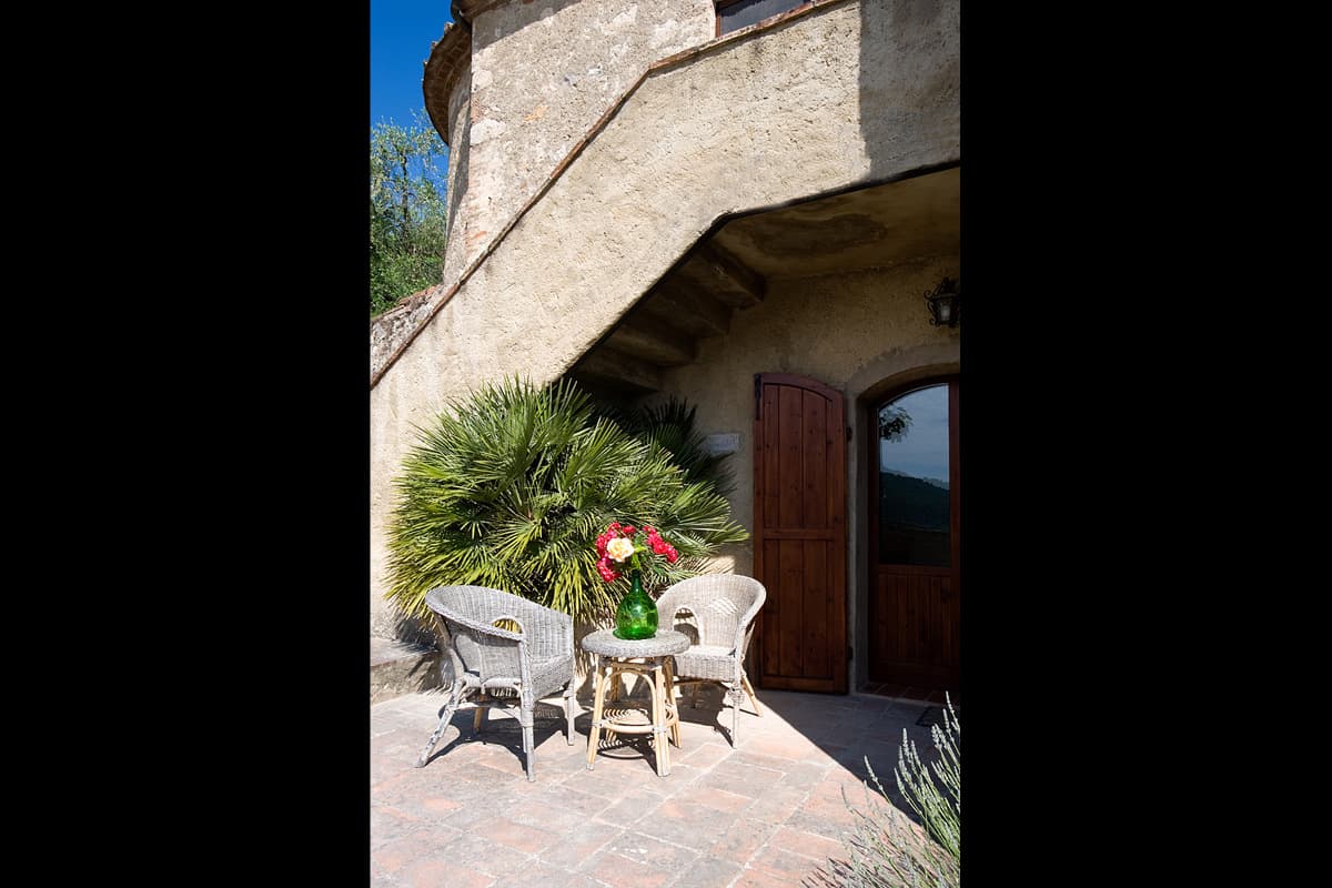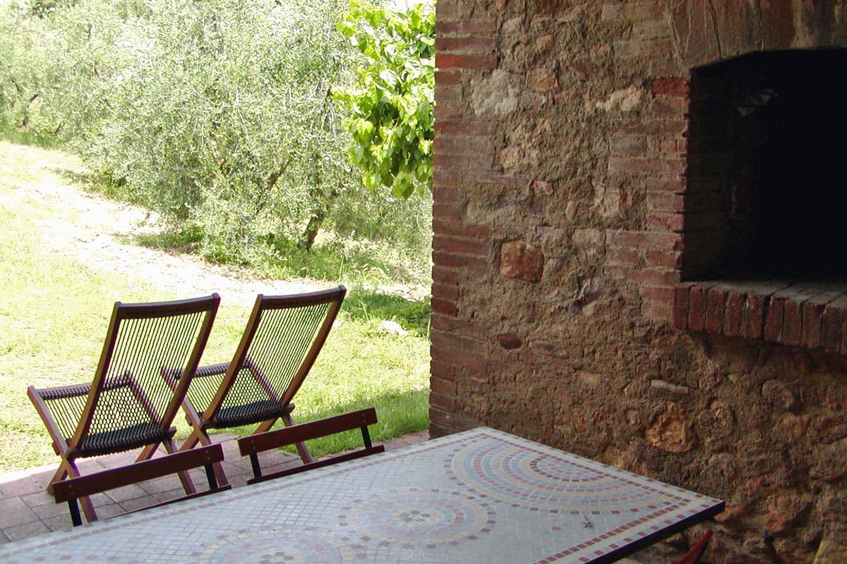It has sweeping uninterrupted views of the valley and the hills that surround it, is has greater quiet than that found in the Estate's central piazza, and it has an olive grove in its back garden and a pizza oven at hand.