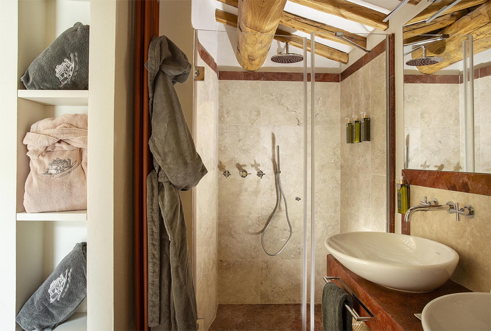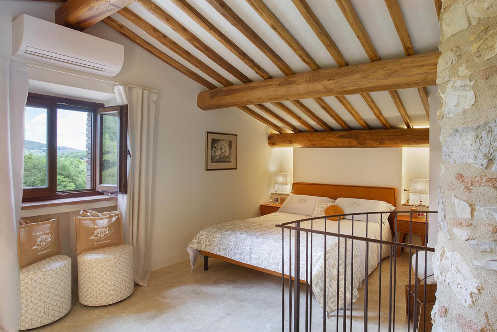 Modern comforts blend seamlessly with rustic Tuscan character: air conditioning throughout keeps you cool during summer days, the heated pool extends your swimming season into spring and autumn, and all three bedrooms have their own bathrooms for privacy and convenience. The open-plan living spaces and generous outdoor terraces mean there's room to be together or find your own quiet corner.