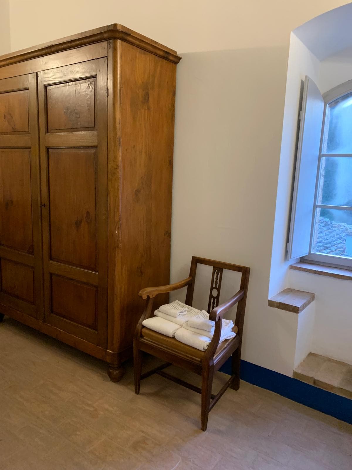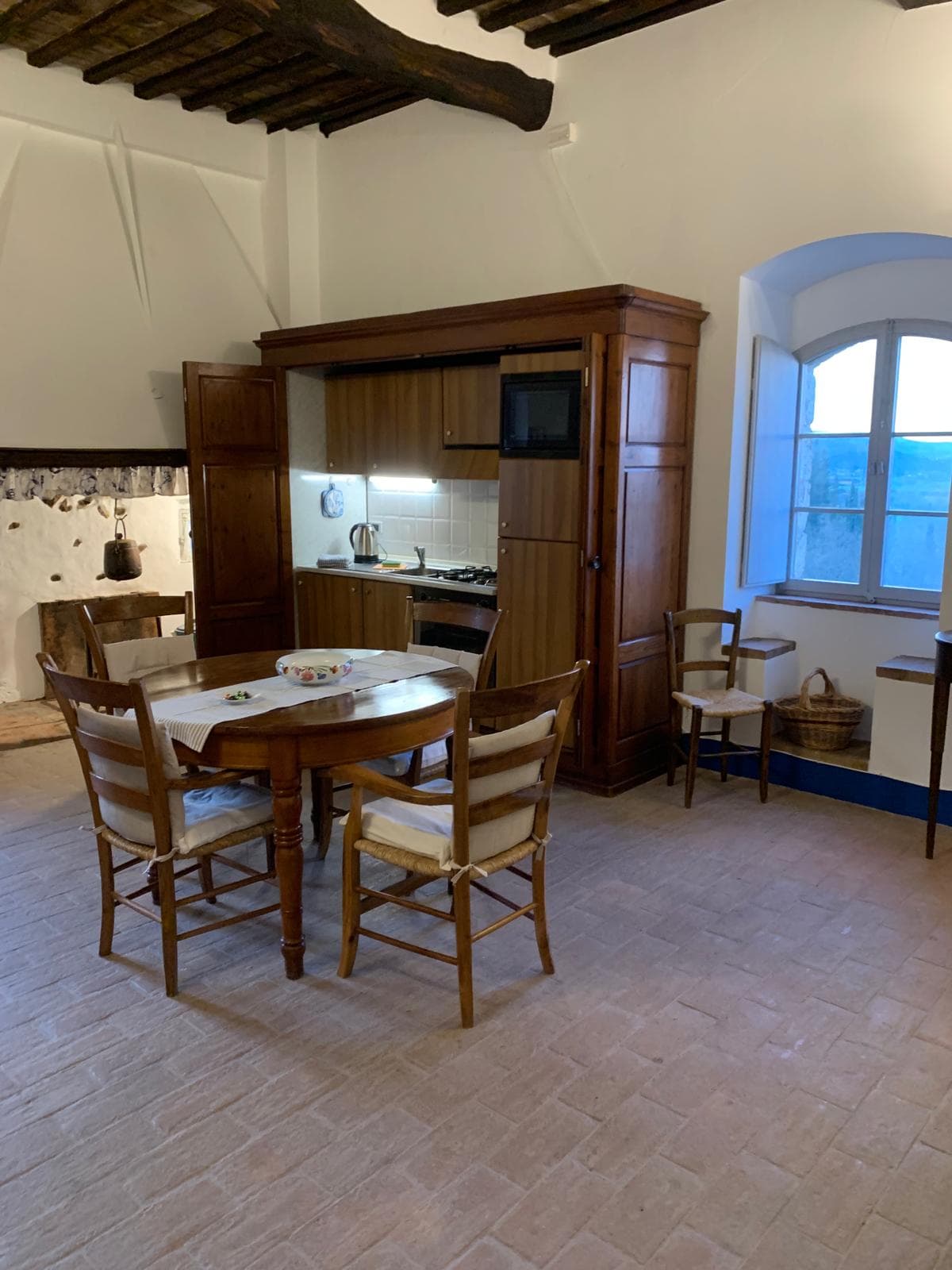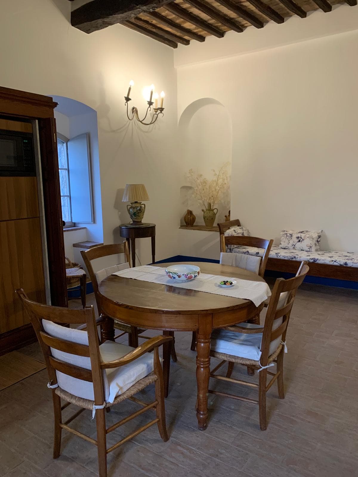 Next to the kitchen wardrobe there is a window with little seats built into it, a medieval detail rarely seen today, and still the perfect place to relax and enjoy the view while somebody else prepares a delicious meal.