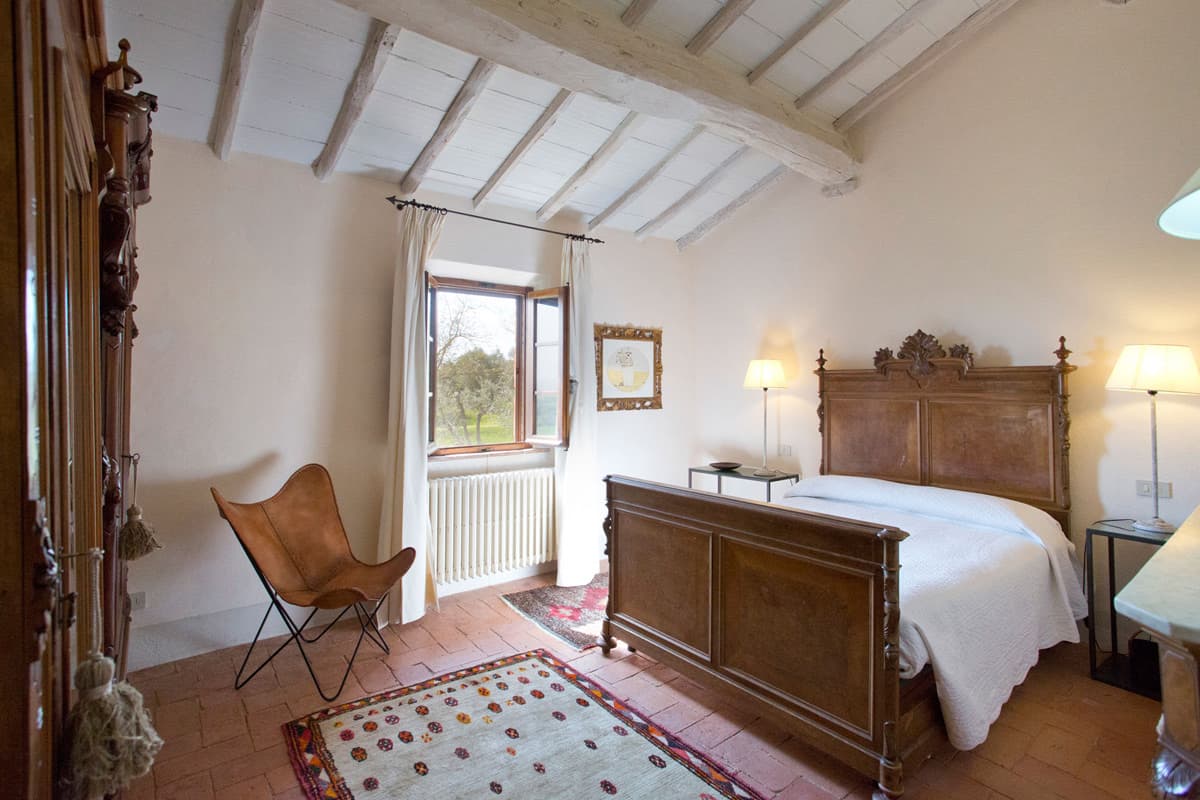 Close to Siena yet surrounded by beautiful Tuscan countryside, Uliveto is a villa for four with a private pool set among the olive trees behind the house. The interiors are spacious and stylishly decorated, with high wooden-beamed ceilings, white-washed walls and deep window reveals, and the apartment is air-conditioned, with insect screens and fans for when you want to let the Tuscan air flow through the house.