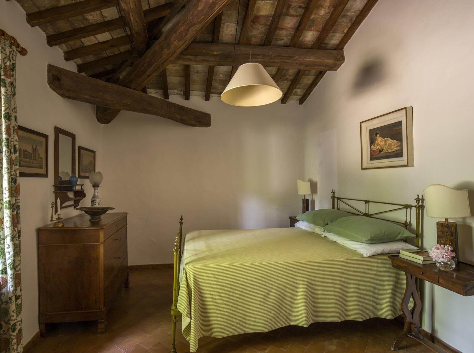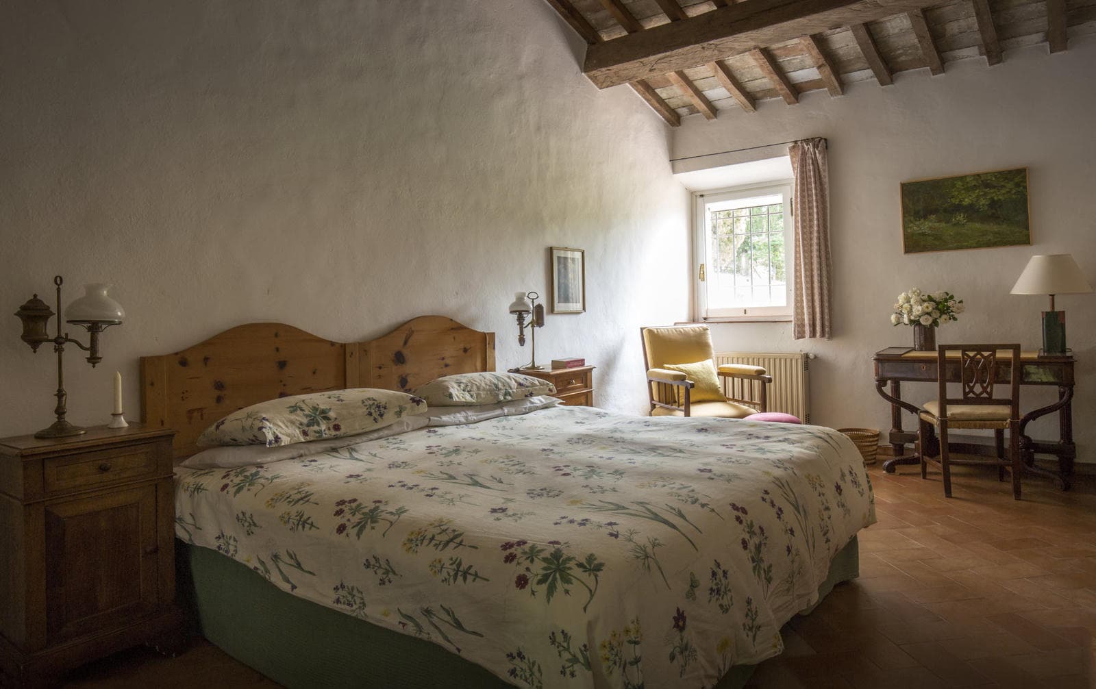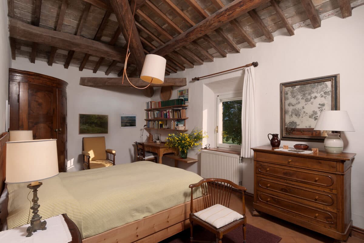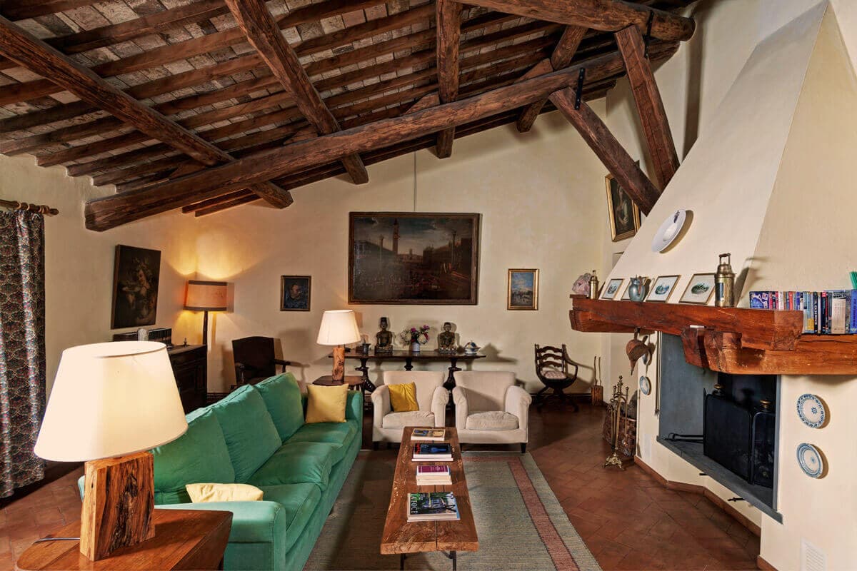 Classically Tuscan, Villa Valdorcia commands a spectacular position high above the Orcia valley with sweeping views towards Mont'Amiata. This is a house made for the Tuscan dream of outdoor living - long lunches at the ancient wooden table gazing over the valley, lazy afternoons on the green lawn, and evening swims in the pool set into the hillside below. The villa breathes with the warmth of a family home, filled with heirlooms and antique furniture collected over generations - authentic layers of Tuscan life rather than staged decoration. Read an interview with the family owners of Valdorcia here.