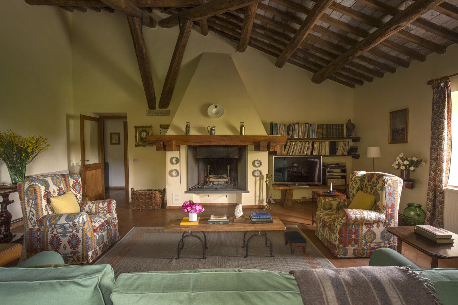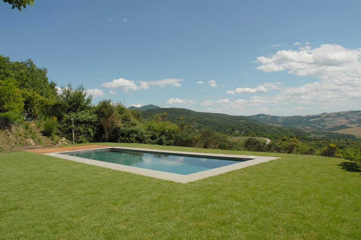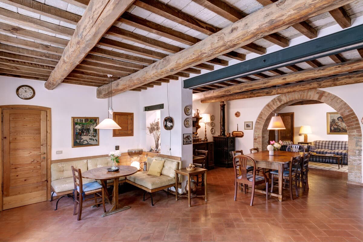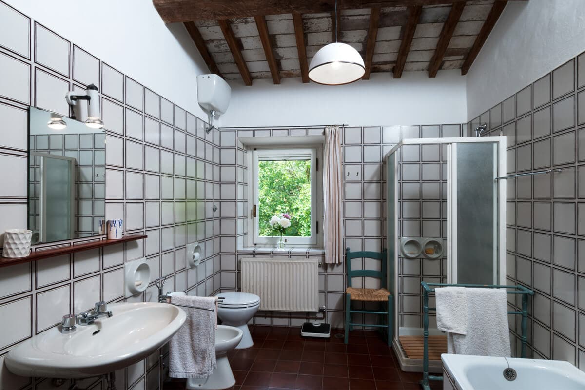 Classically Tuscan, Villa Valdorcia commands a spectacular position high above the Orcia valley with sweeping views towards Mont'Amiata. This is a house made for the Tuscan dream of outdoor living - long lunches at the ancient wooden table gazing over the valley, lazy afternoons on the green lawn, and evening swims in the pool set into the hillside below. The villa breathes with the warmth of a family home, filled with heirlooms and antique furniture collected over generations - authentic layers of Tuscan life rather than staged decoration. Read an interview with the family owners of Valdorcia here.