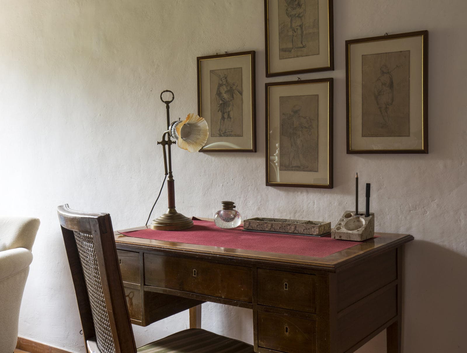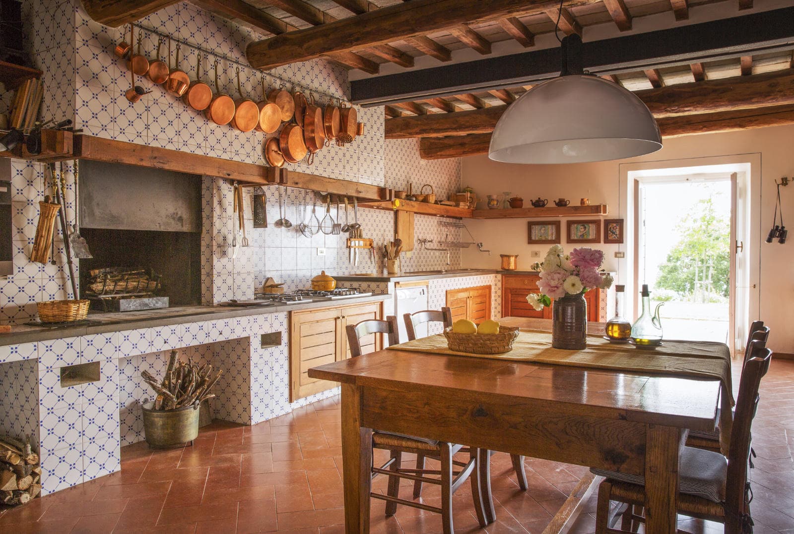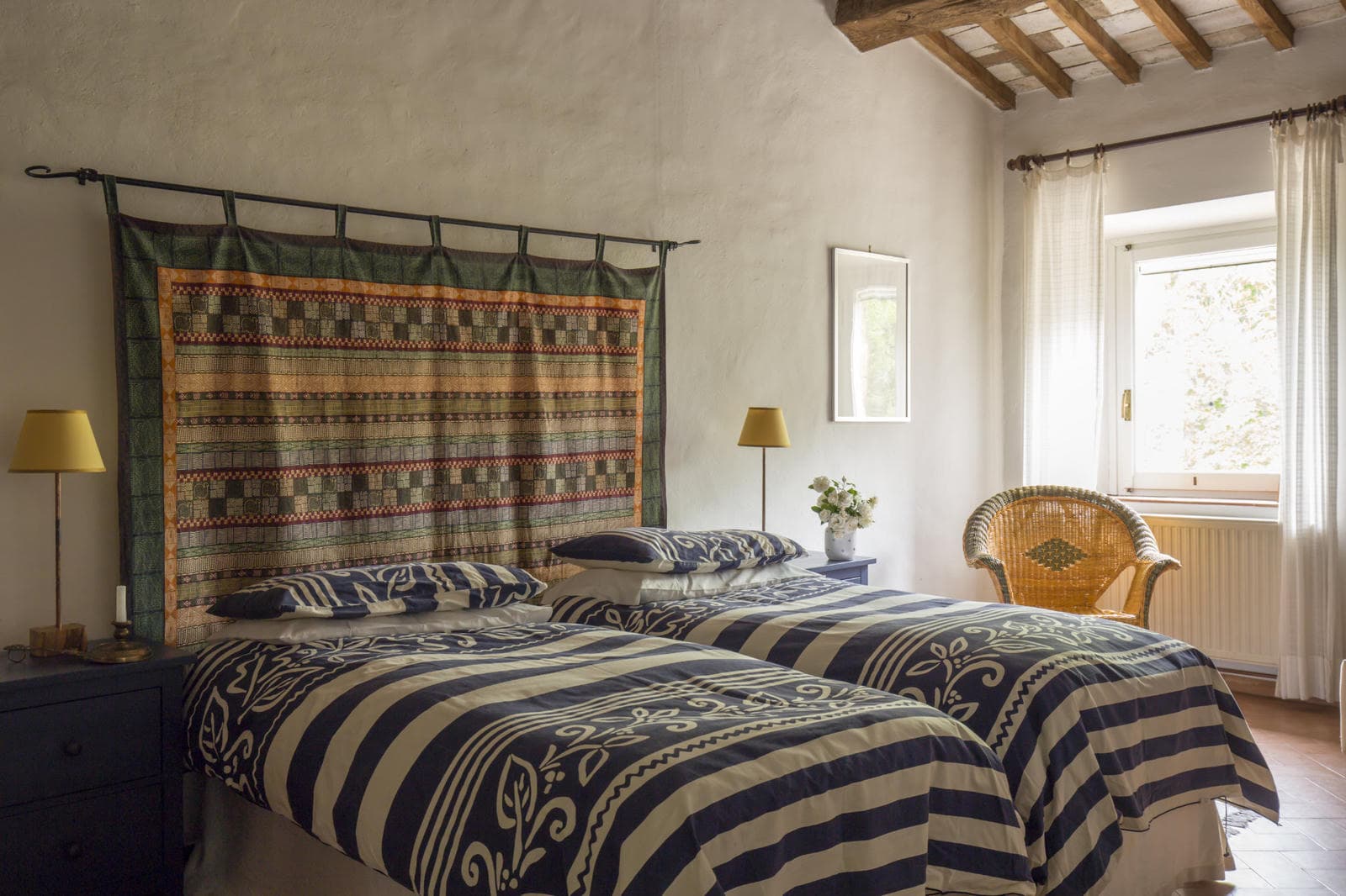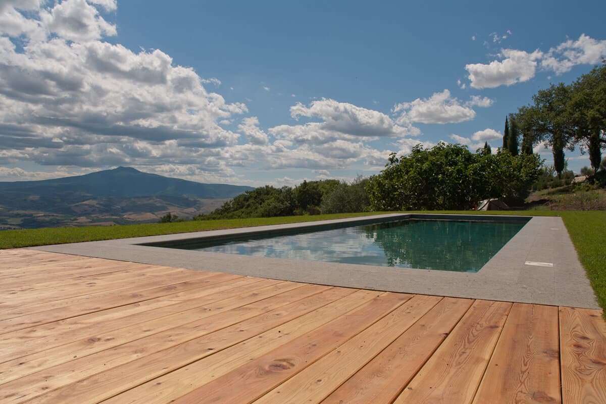 Classically Tuscan, Villa Valdorcia commands a spectacular position high above the Orcia valley with sweeping views towards Mont'Amiata. This is a house made for the Tuscan dream of outdoor living - long lunches at the ancient wooden table gazing over the valley, lazy afternoons on the green lawn, and evening swims in the pool set into the hillside below. The villa breathes with the warmth of a family home, filled with heirlooms and antique furniture collected over generations - authentic layers of Tuscan life rather than staged decoration. Read an interview with the family owners of Valdorcia here.