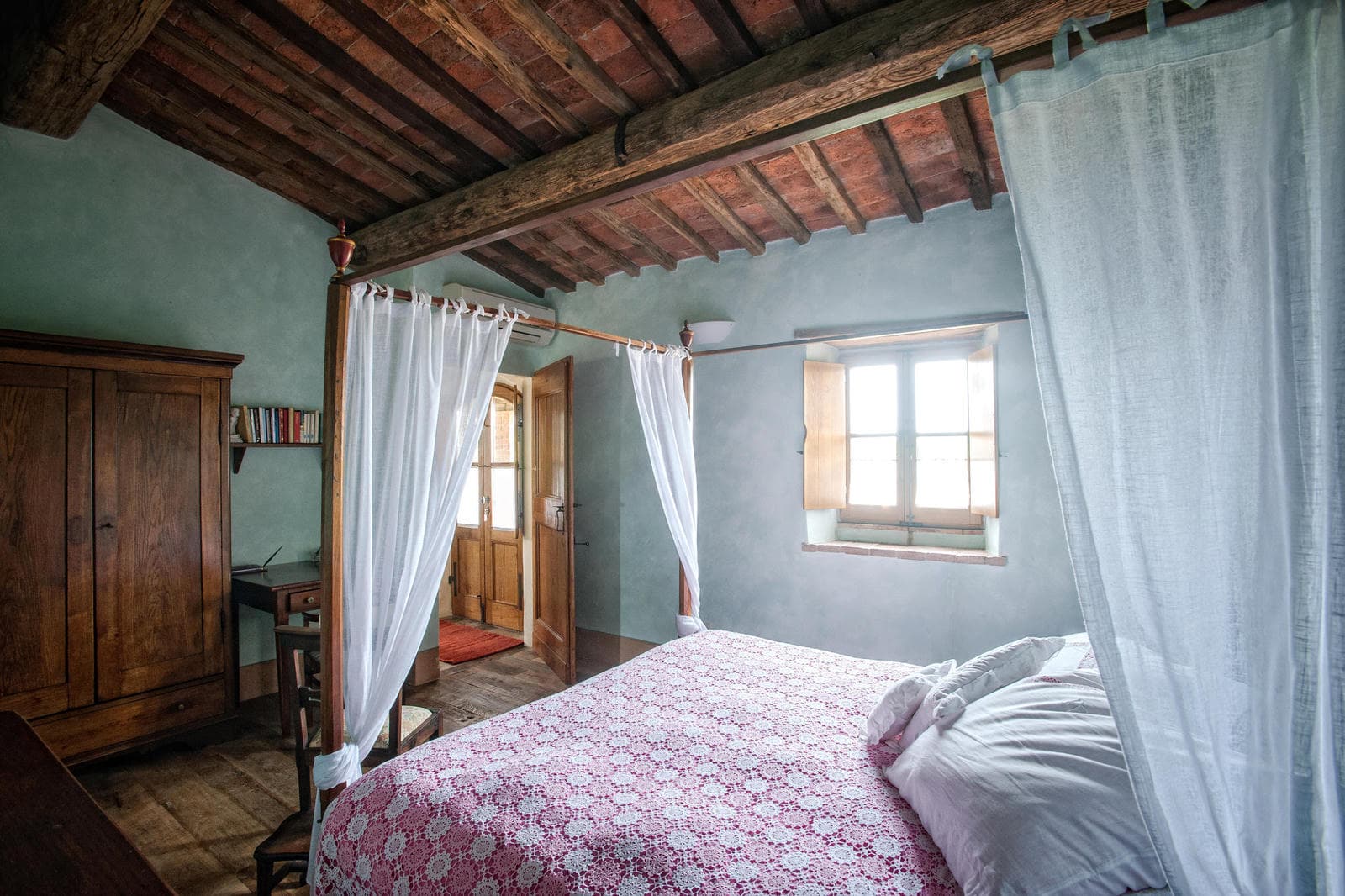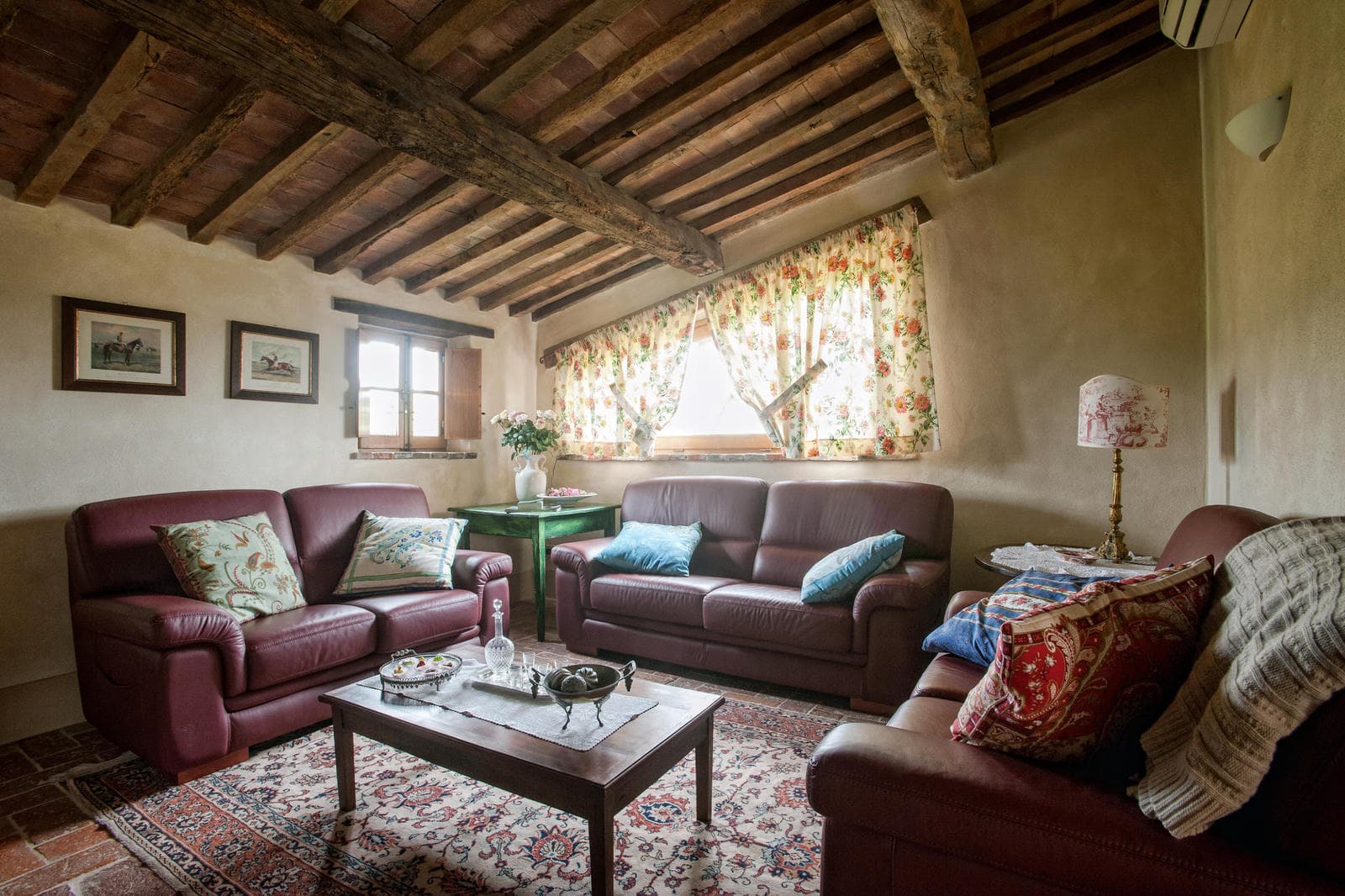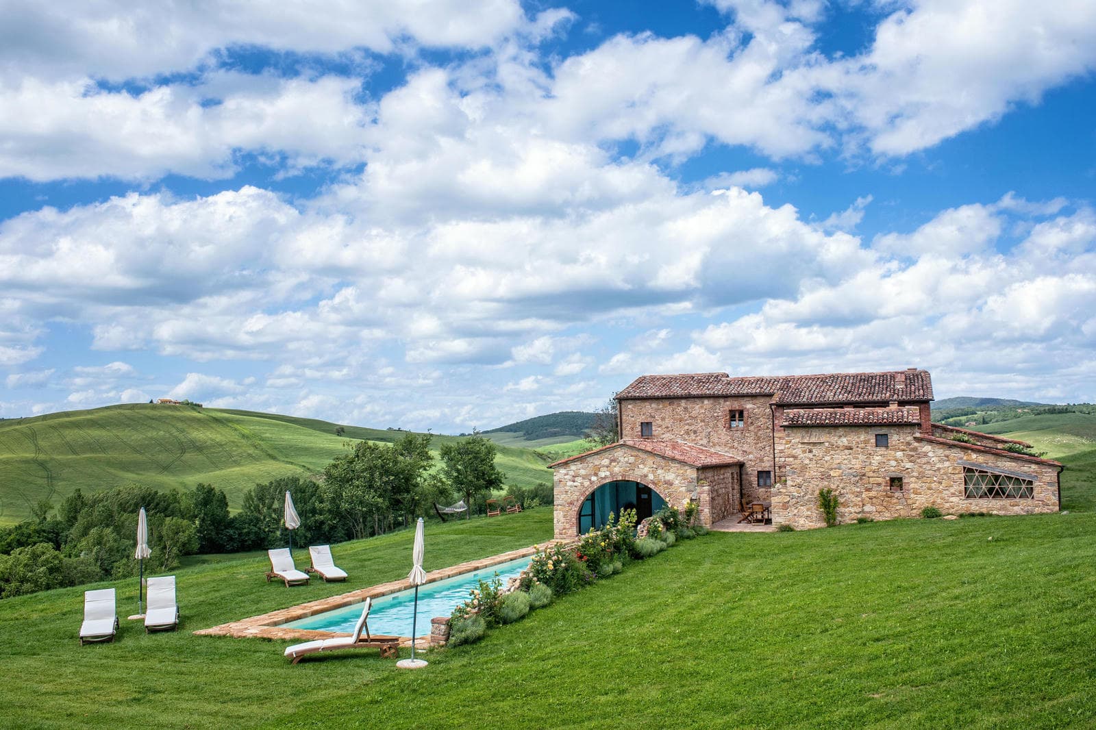 Gently resting in the folds of the hills of the famous Val d'Orcia area of Tuscany, Fiammetta is a delightful base for exploring all the famous cities and sights of the area. From medieval Siena to papal Pienza or the incredible gardens of La Foce designed by Iris Origo, everything is within easy reach. If enthusiasm should wane, staying at home offers equal delights, with an amazing 24m. long swimming pool, of which the last 6 metres are tucked into the shade and cover of an ancient Tuscan barn.