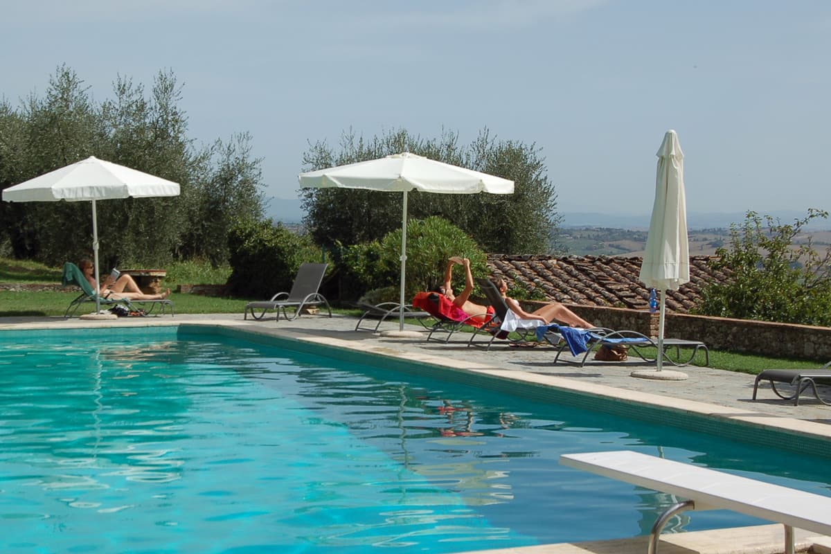 There are two large swimming pools shared by guests at the main villa and the farmhouses. Both have ample sun furniture and extensive views across the countryside as far as Siena. The pool nearest the villa is reserved for people who want peace and quiet.