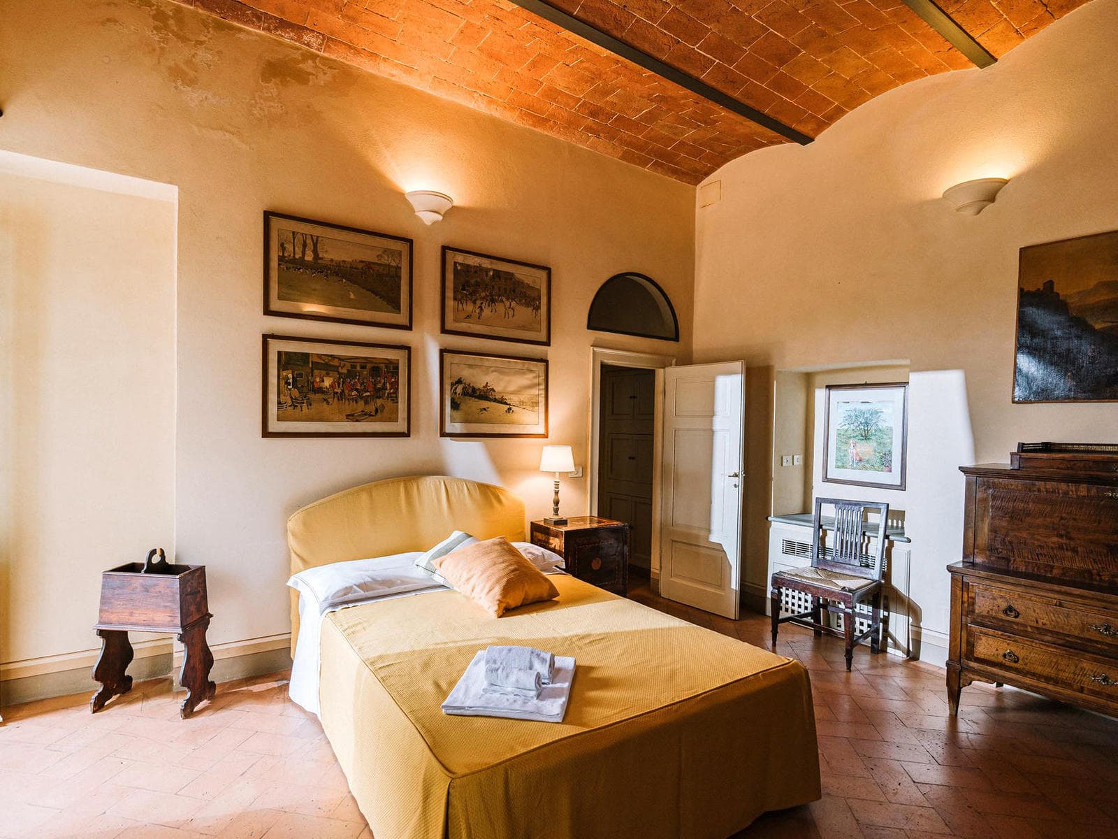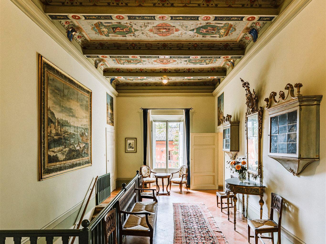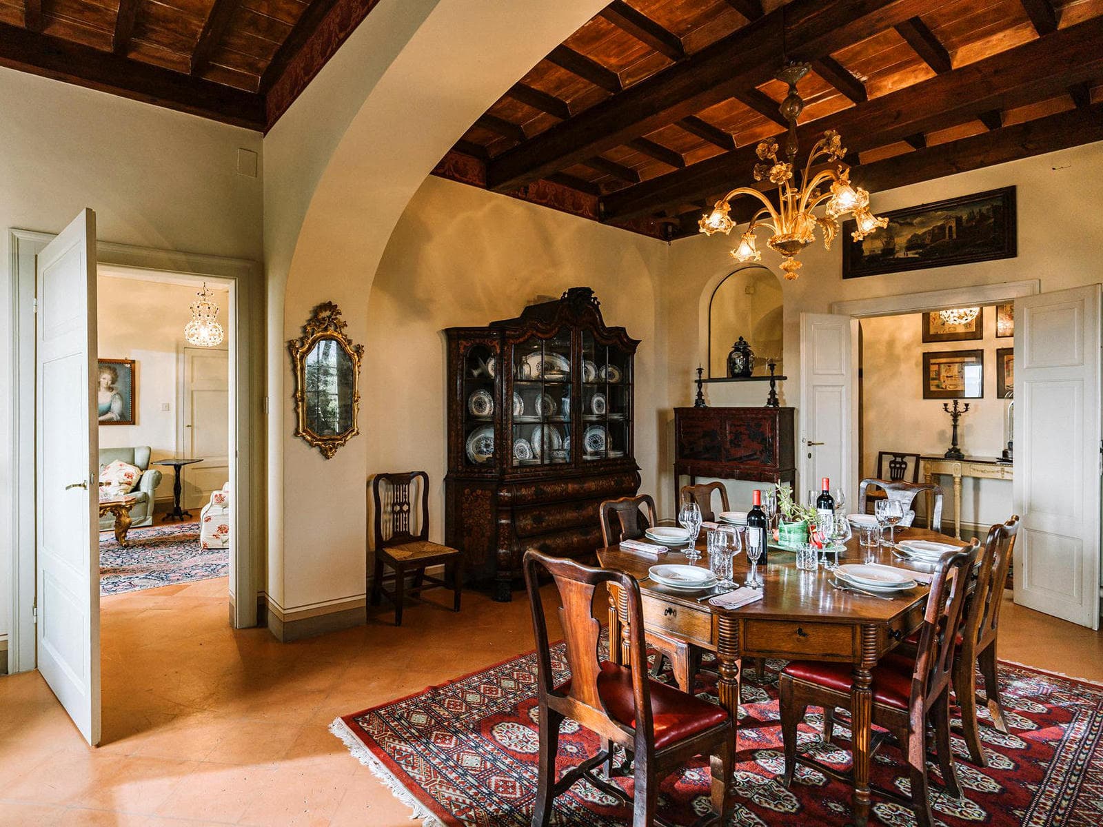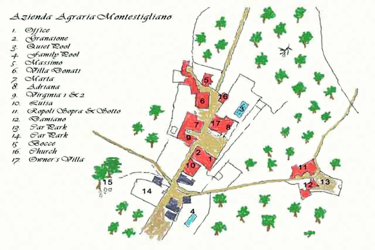 Situated in exceptionally picturesque countryside, Montestigliano has all the characteristics of the classic Tuscan Great Estate: avenues of cypresses, vineyards, olive groves, woodlands and neat, cultivated fields. Other farmhouses on the estate have been converted for holiday use. Villa Giancarlo is the heart of this historic hamlet and has elegant period interiors that speak of ancient prosperity and status, with large, nobly proportioned rooms with high, beamed, decorated ceilings and antique furniture.