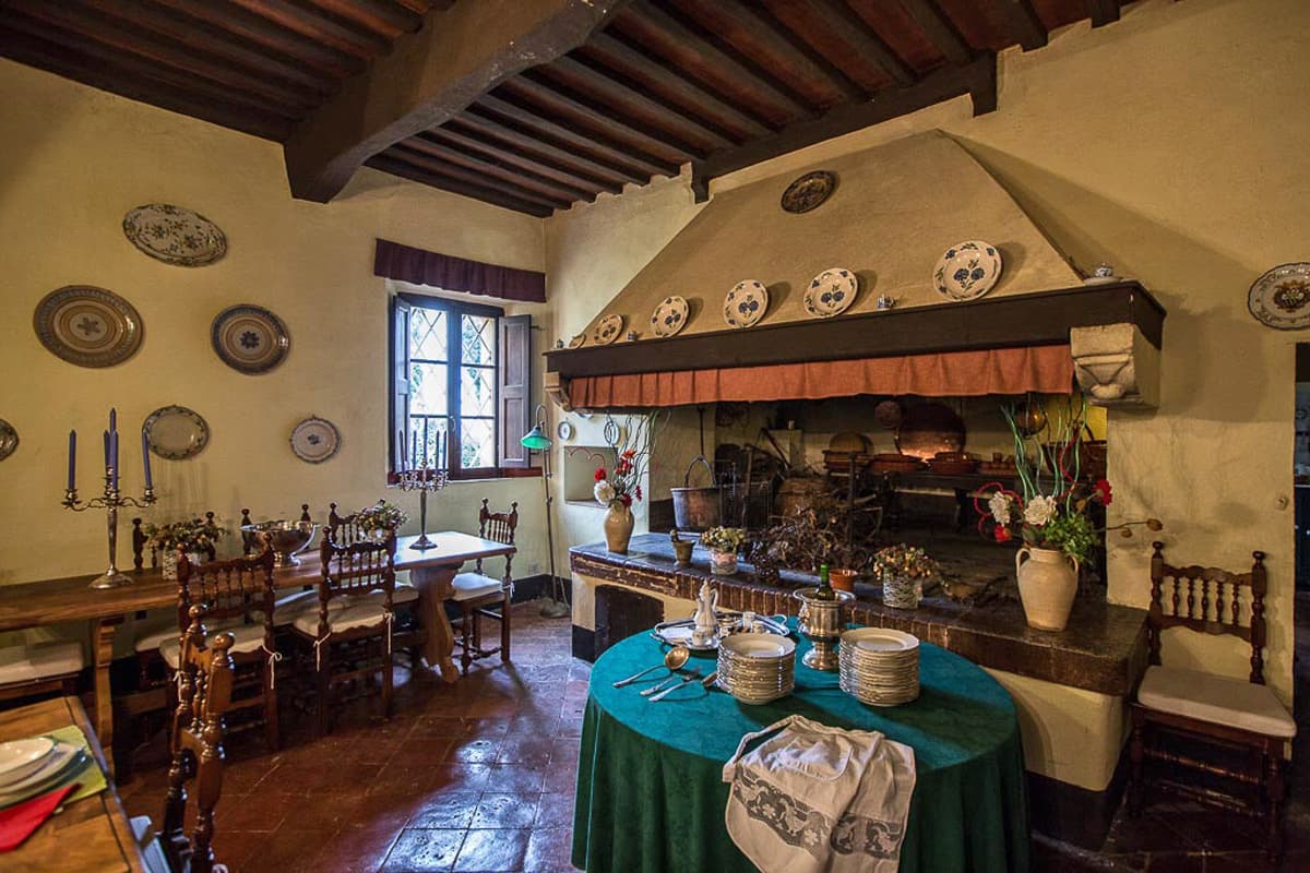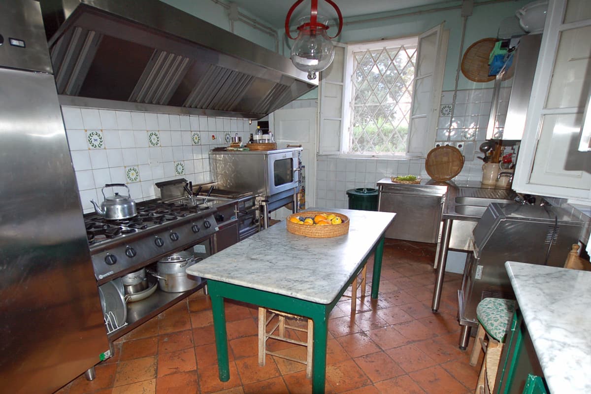 The enormous dining room comfortably seats 25/30 people and has reputedly the largest fireplace in Tuscany - it is practically a room unto itself. The kitchen, nearby, has first class professional equipment, including a food processor, dishwasher, washing machine and microwave. It is a kitchen to match the number of people that may stay in the house, so is seriously efficient looking, in stainless steel.