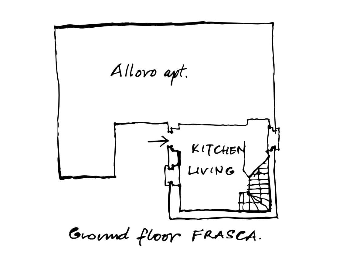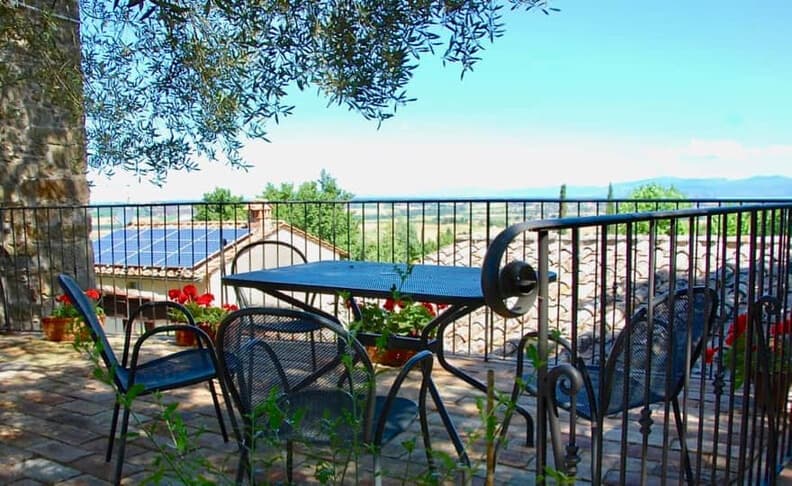 To the right of the entrance a terrace has a small table and chairs, a lovely place to sit and relax with an aperitivo looking out at the view.