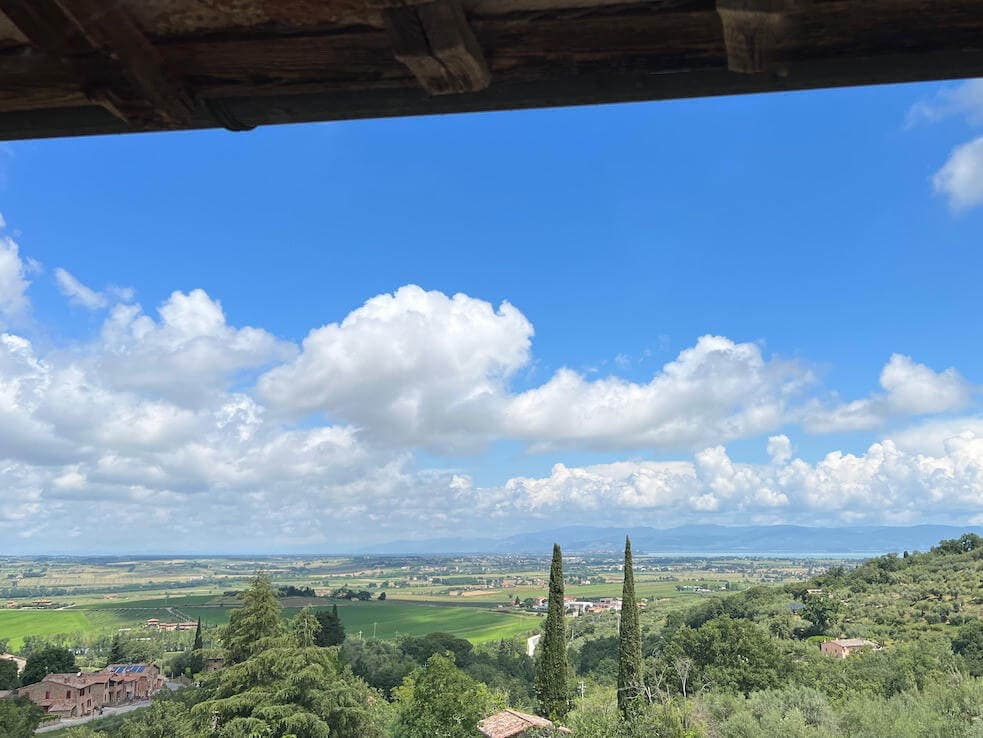 Around the apartments there is plenty of space to relax and run around in two and a half acres of lawn, olive trees and fruit trees. There are beautiful views over Paciano, recently voted one of the most beautiful villages of Italy, and over the countryside around the ancient hill towns of Città della Pieve, Chiusi, Cortona and Montepulciano, as well as over Lake Trasimeno and its islands.