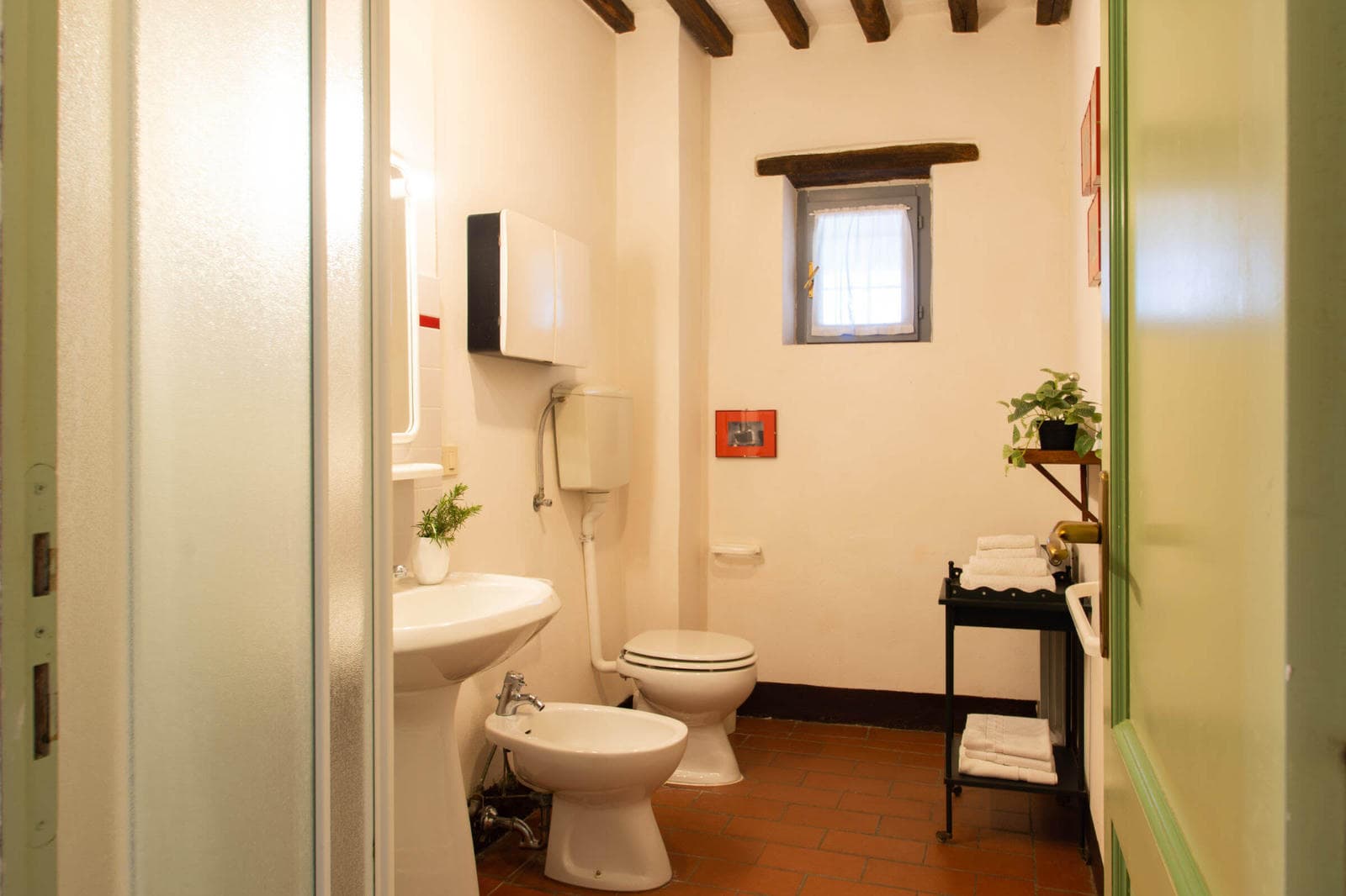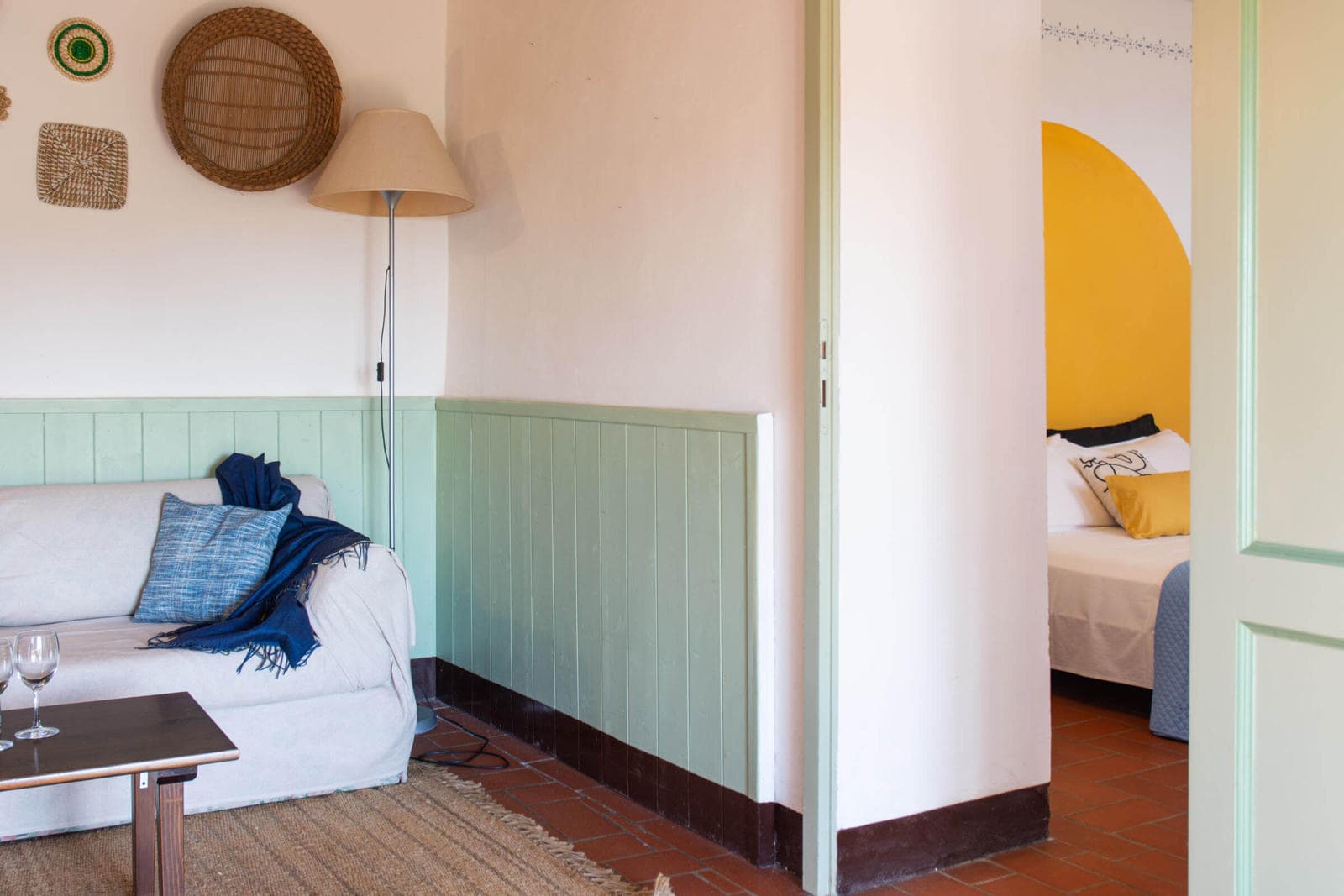 The apartment has its own independent entrance and, like all these apartments, has been decorated simply and interestingly with a mix of vintage furniture. It has a large double bedroom and a twin which share a bathroom.