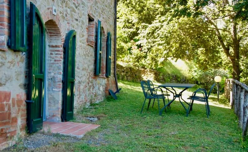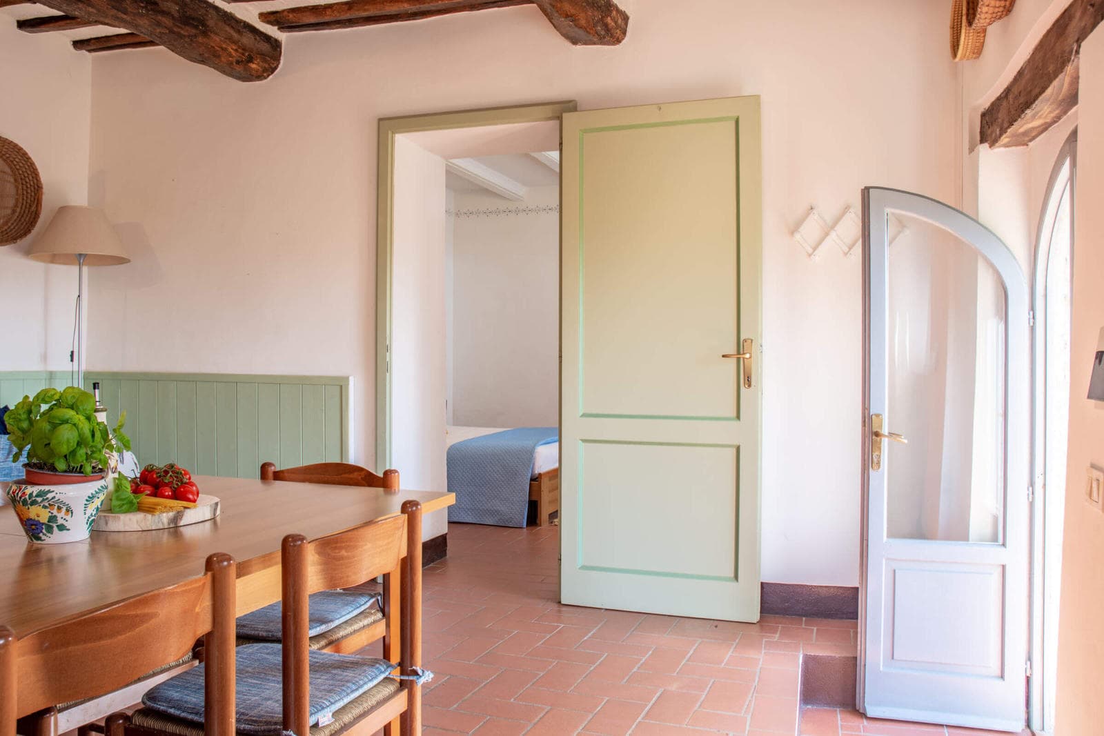 Palo is on the ground floor of the large old farmhouse 'Vocabolo' near the village of Paciano. On one side it looks out towards the village while on the other side it has a large wooden pergola providing shade and a great spot to eat al-fresco.