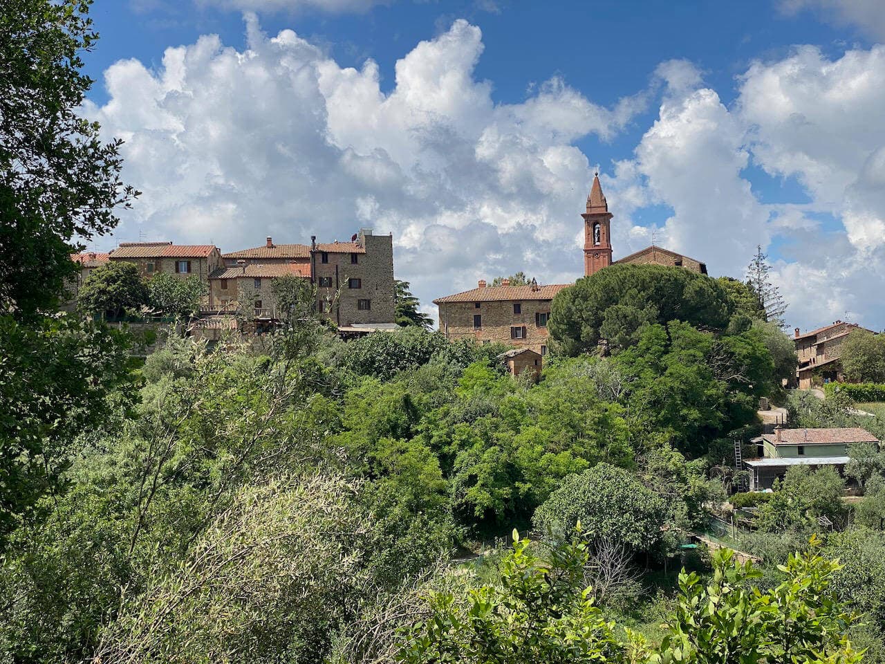 There are beautiful views from the Podere over Paciano, recently voted one of the most beautiful villages of Italy, and over the countryside around the ancient hill towns of Città della Pieve, Chiusi, Cortona and Montepulciano, as well as over Lake Trasimeno and its islands.