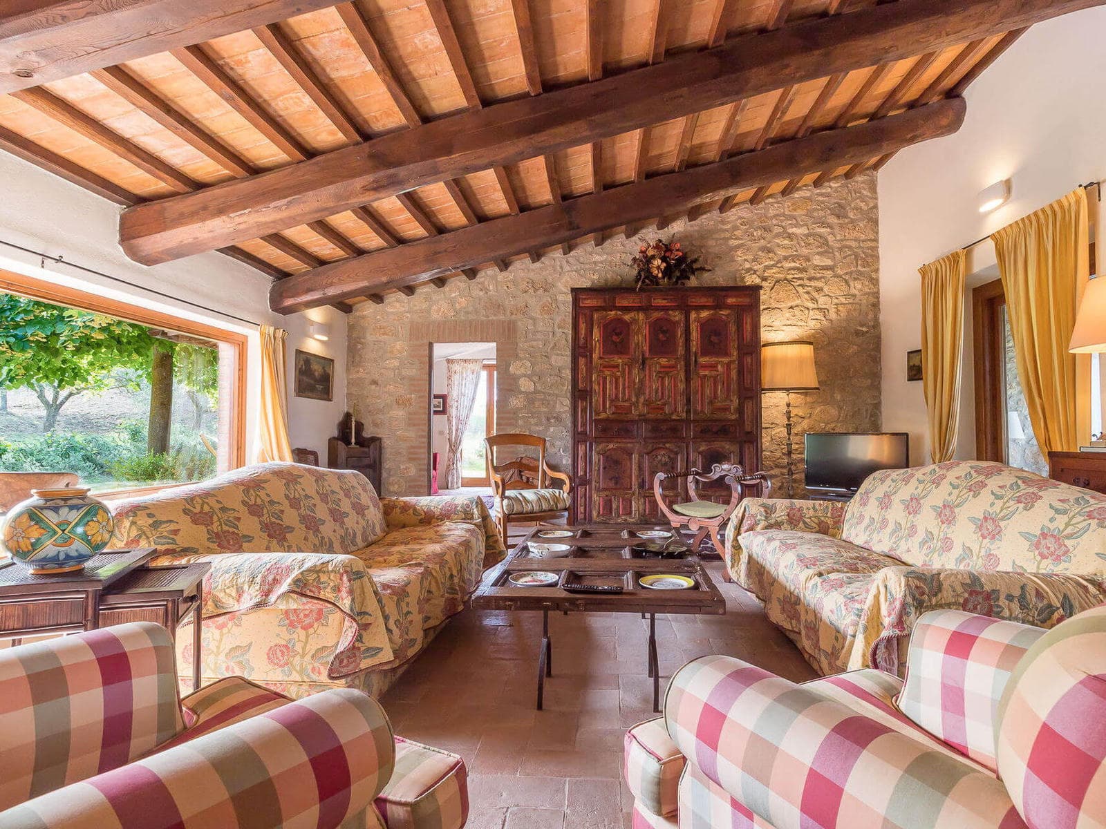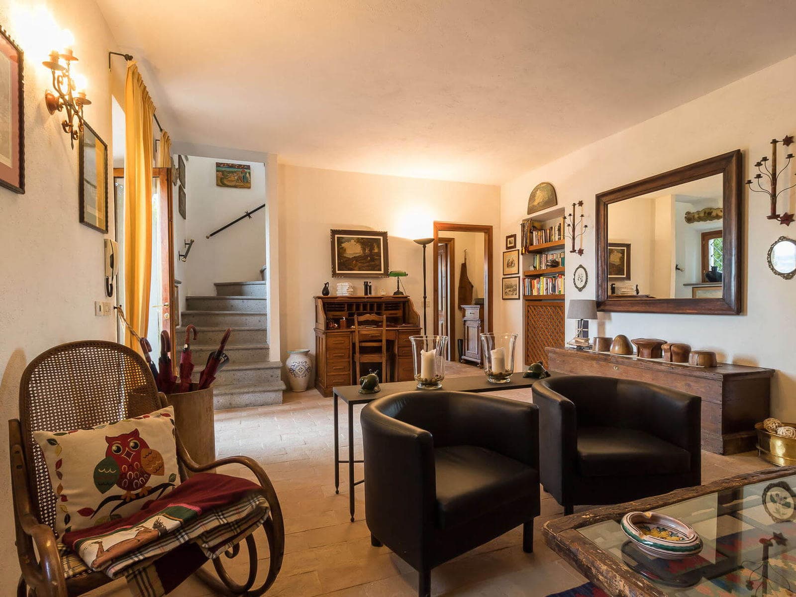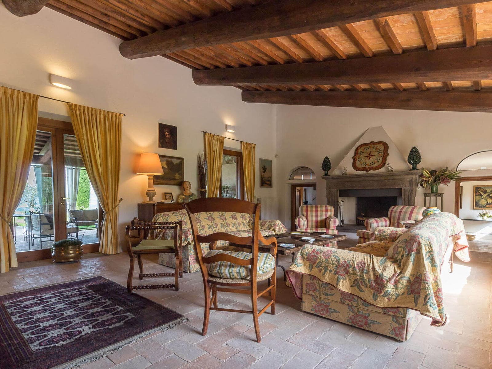 Set amidst the landscapes of the verdant heart of Umbria, Silenti stands as an elegant country house enveloped by rolling hills, olive groves and cypress trees. Spanning 500 square meters of indoor living space and sprawling across two hectares of outdoor grounds, the villa comprises two adjacent stone houses. The main residence accommodates up to ten guests, while a smaller guest cottage adjacent to the main house offers lodging for four people.