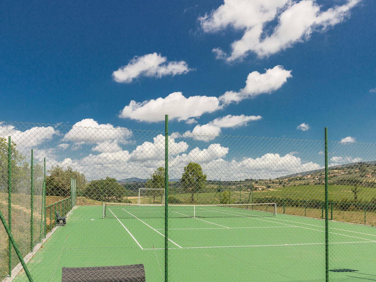 Outdoor amenities include a beautifully furnished loggia providing panoramic views of the countryside, a second outdoor lounge area, and a third pergola equipped with dining space. Positioned a few steps above the main house, Silenti boasts a panoramic swimming pool, complemented by an additional furnished patio and a tennis court. The surrounding garden is adorned with vibrant roses, fragrant lavender, and an array of other blooming flowers.