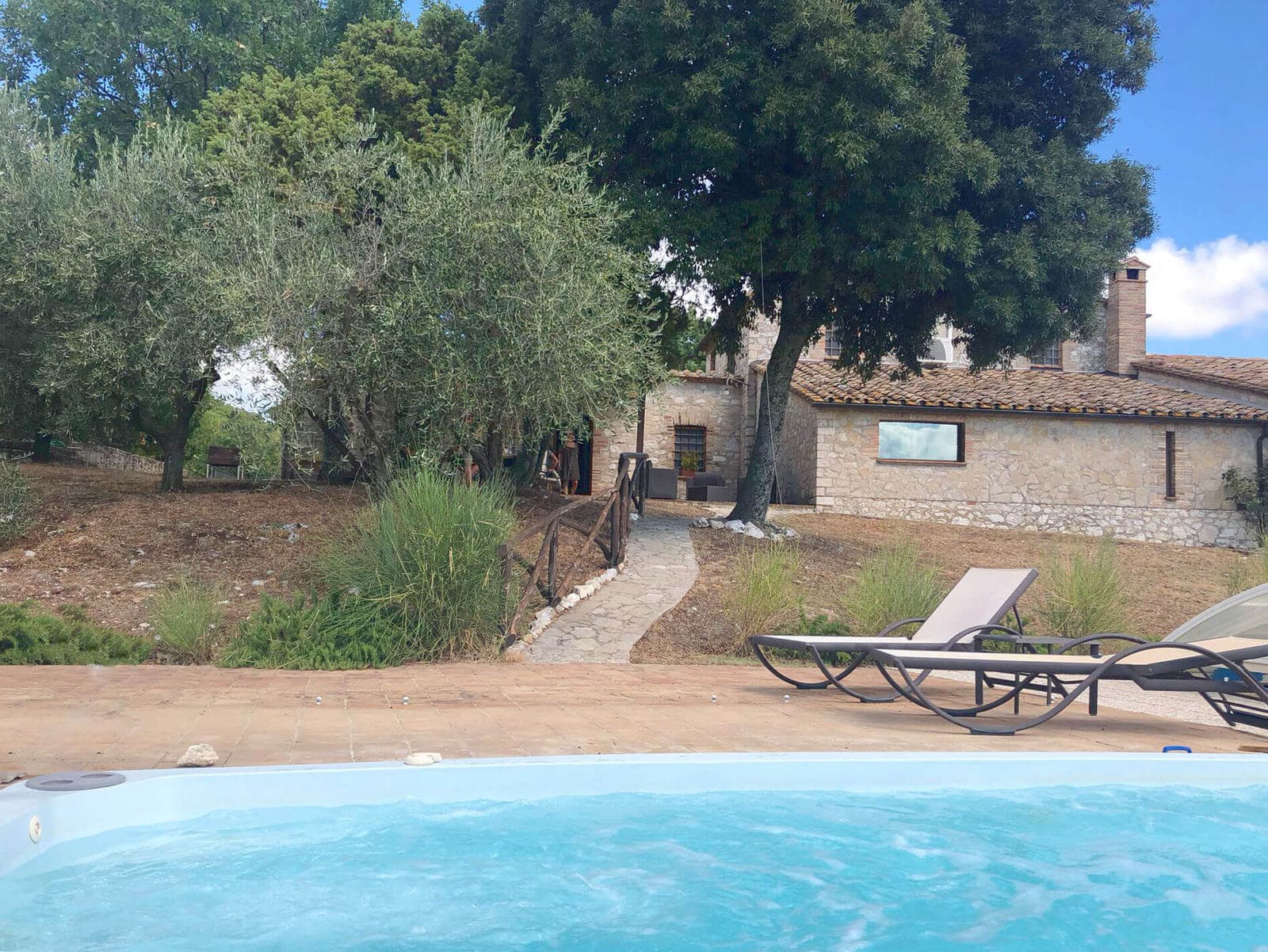 In the green hills of Umbria, Villa Serra is an engaging family home for 8 with long-reaching views of nearby mount Terminillo, best enjoyed from the large Jacuzzi with space for everybody to relax; it's the prefect place to soak in company and a drink while enjoying the view. The house is surrounded by large green areas belonging to the property and has private parking.