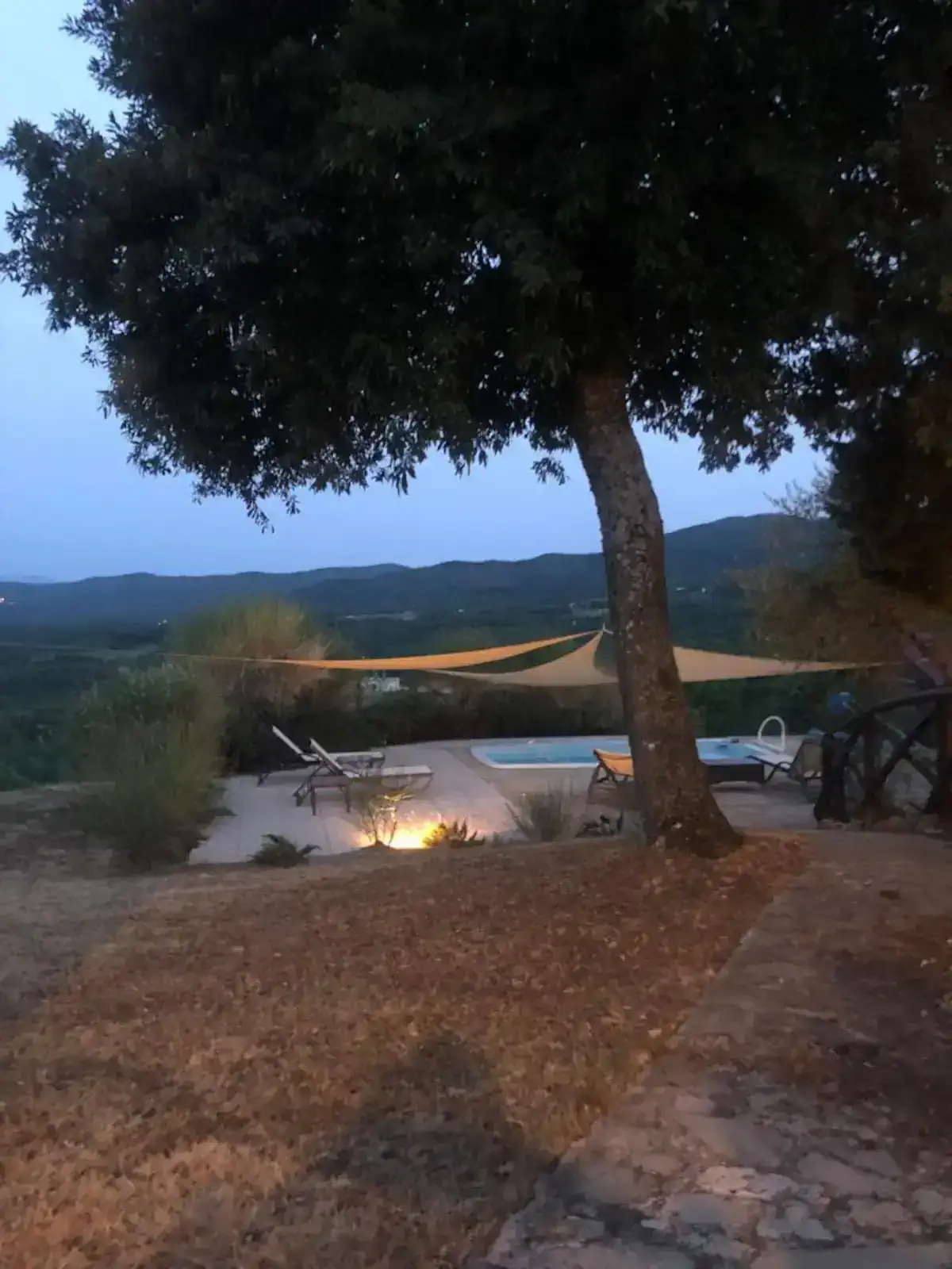 The village is under a km away, so a 10-15 min walk, uphill on the way there and downhill on the way back. In the village there is a bar (which also sells basic necessities such as milk) which more or less opens on request. There are also two good restaurants in the village. A pickup truck brings vegetables, fruit and fresh bread to town two mornings a week, honks, serves and leaves.